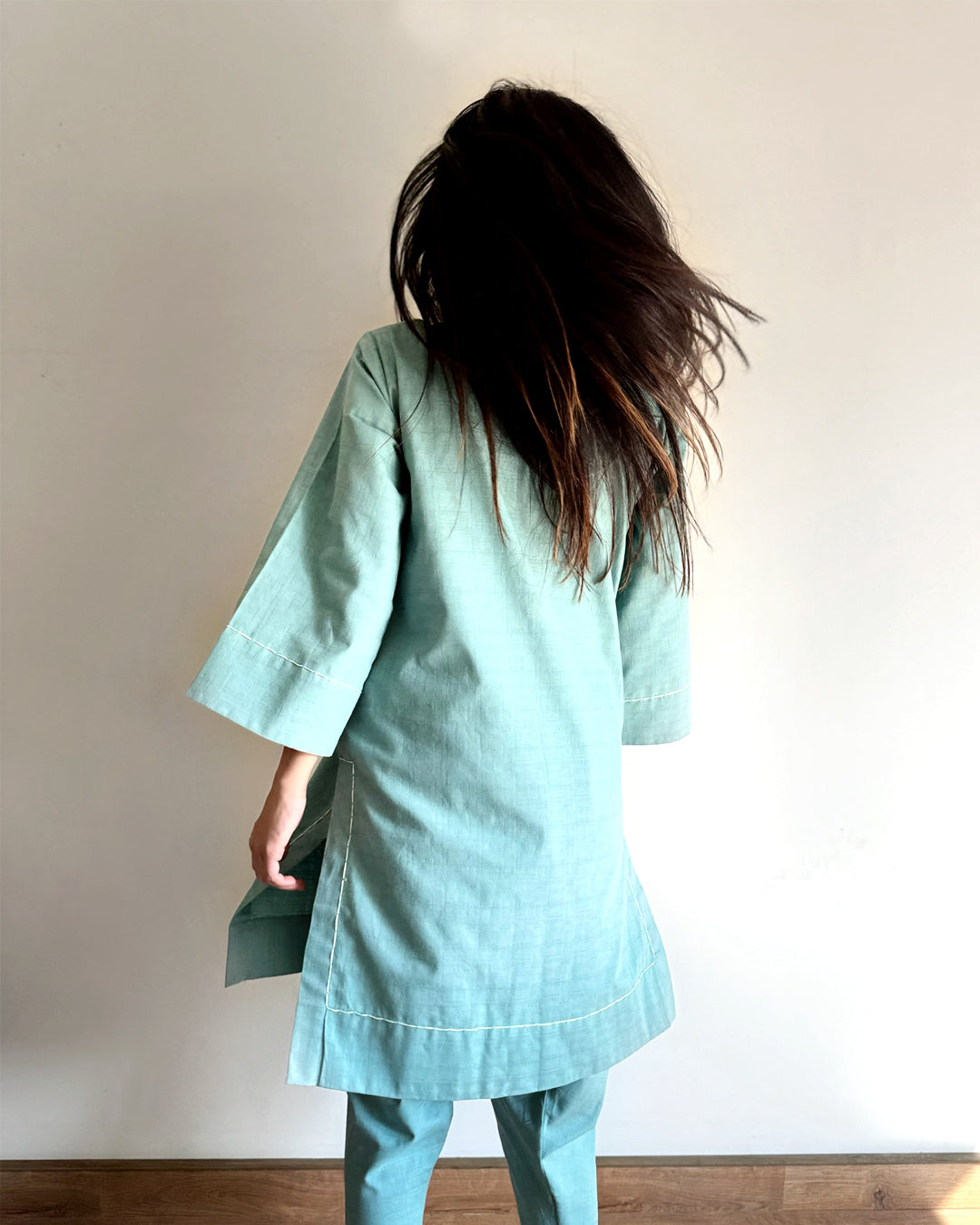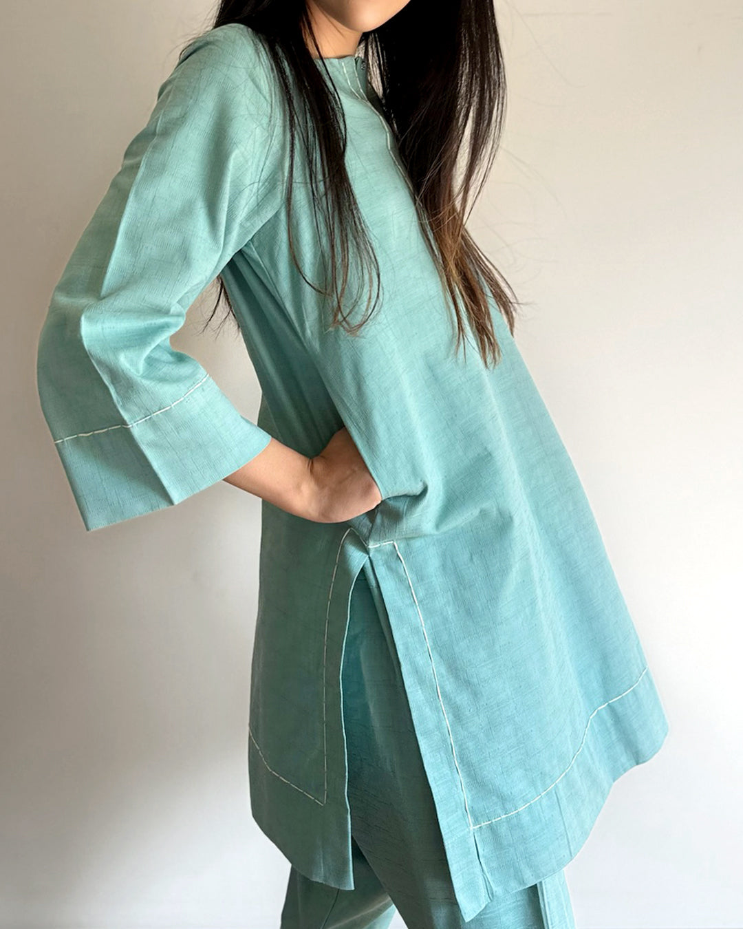 Linen matching separates with skinny shalwar and hand stitch detailing.