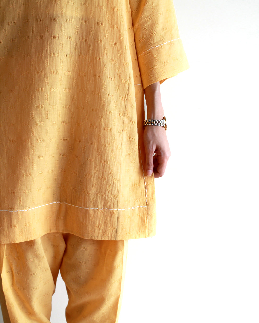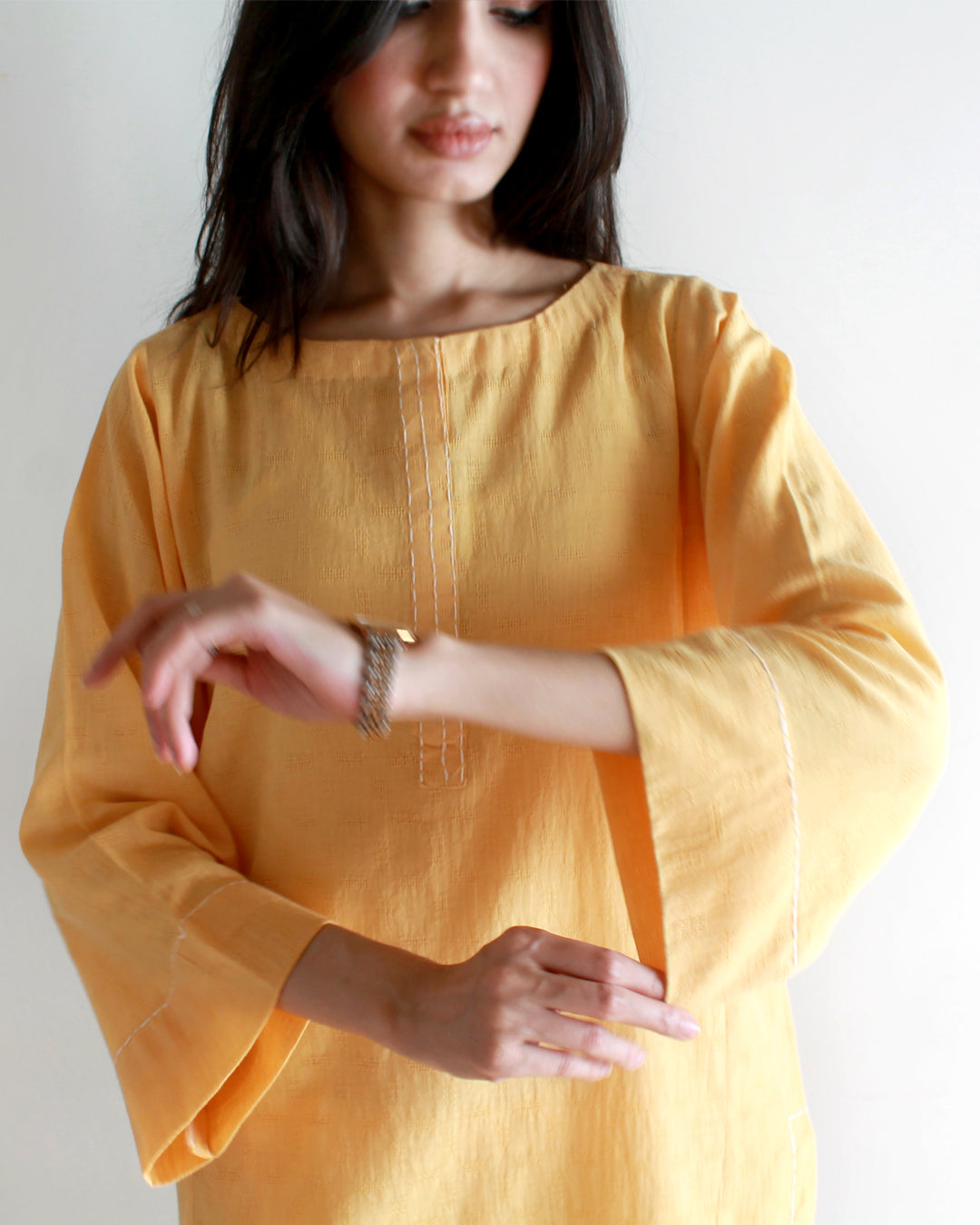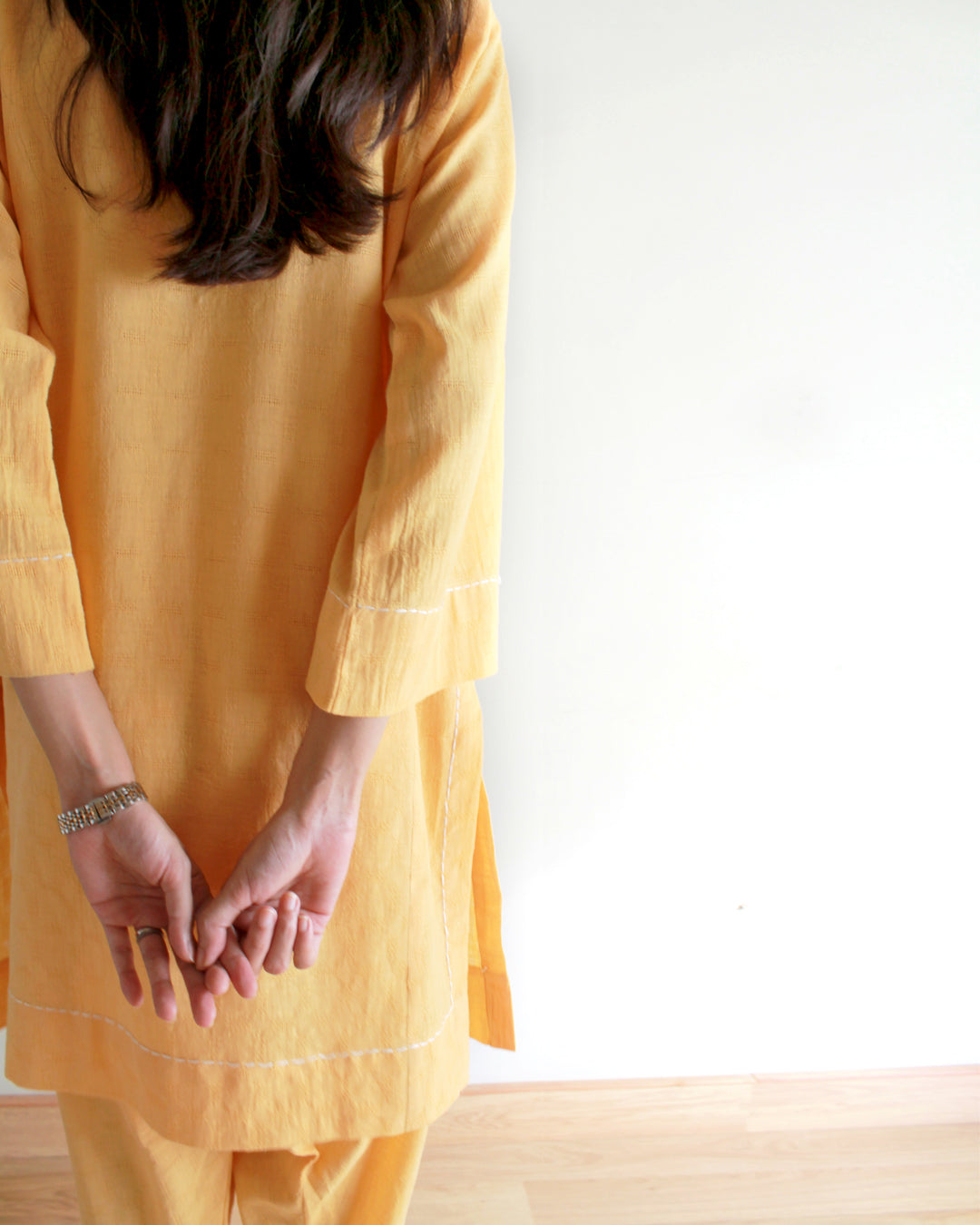 Linen matching separates with skinny shalwar and hand stitch detailing.